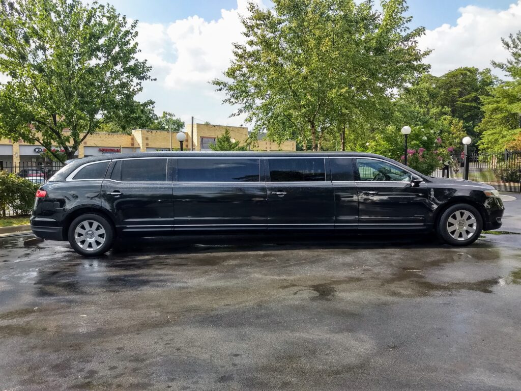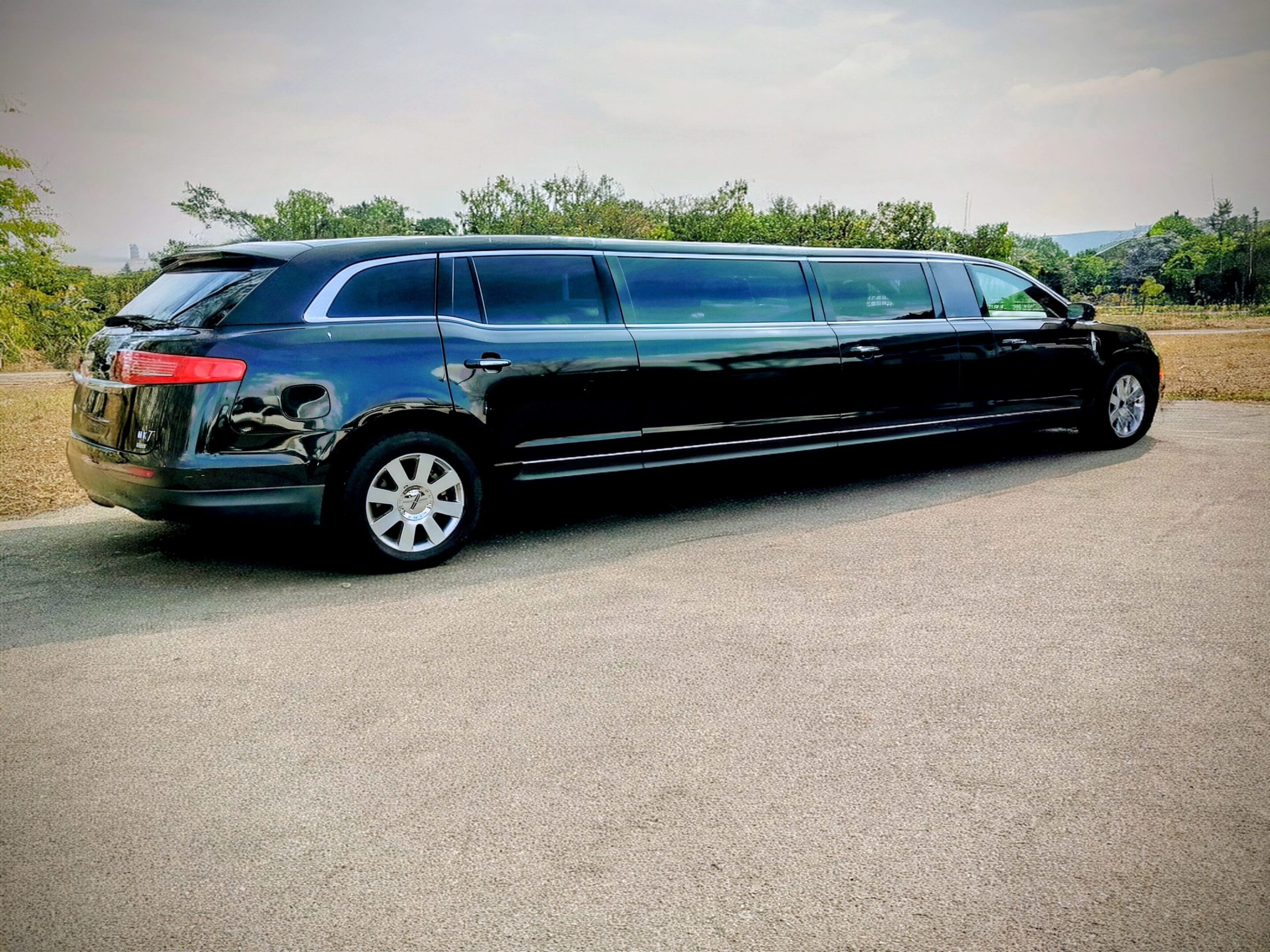Elegant limousine for all occasions with seating for up to 8–10 people. With all black exterior and black leather interior, a giant TV on the bar and on the partition, color wash lights on the ceiling, bar lights, floor lights, opera lights, CD/DVD player with subwoofer and Bluetooth, champagne glasses, cocktail glasses, touch screen control, and climate change. Whatever the occasion is, this limo serves the purpose.